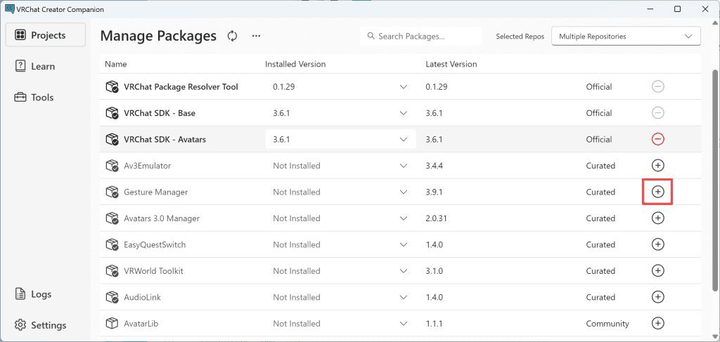 1、加载VCC插件:打开VCC,新建角色项目,并如图点击“Manage Preject”。