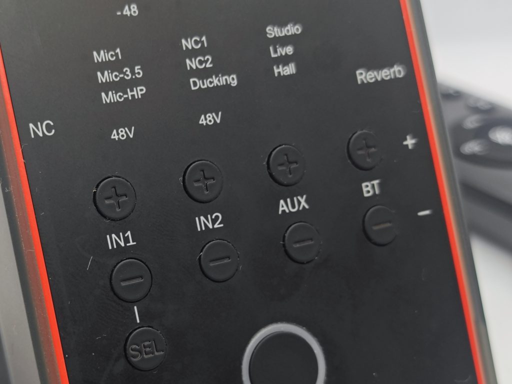 这是真没想到会添加的功能,也证明了M62确实是为直播所设计的声卡。该功能在检测到IN/1(TRS1/Mic-3.5/Mic-HP)和IN/2两组输入的时候,自动降低其他音源的音量。这比较多见是来自主播的系统音乐、游戏音乐等,以避免这些声音过大,影响听到主播的声音。