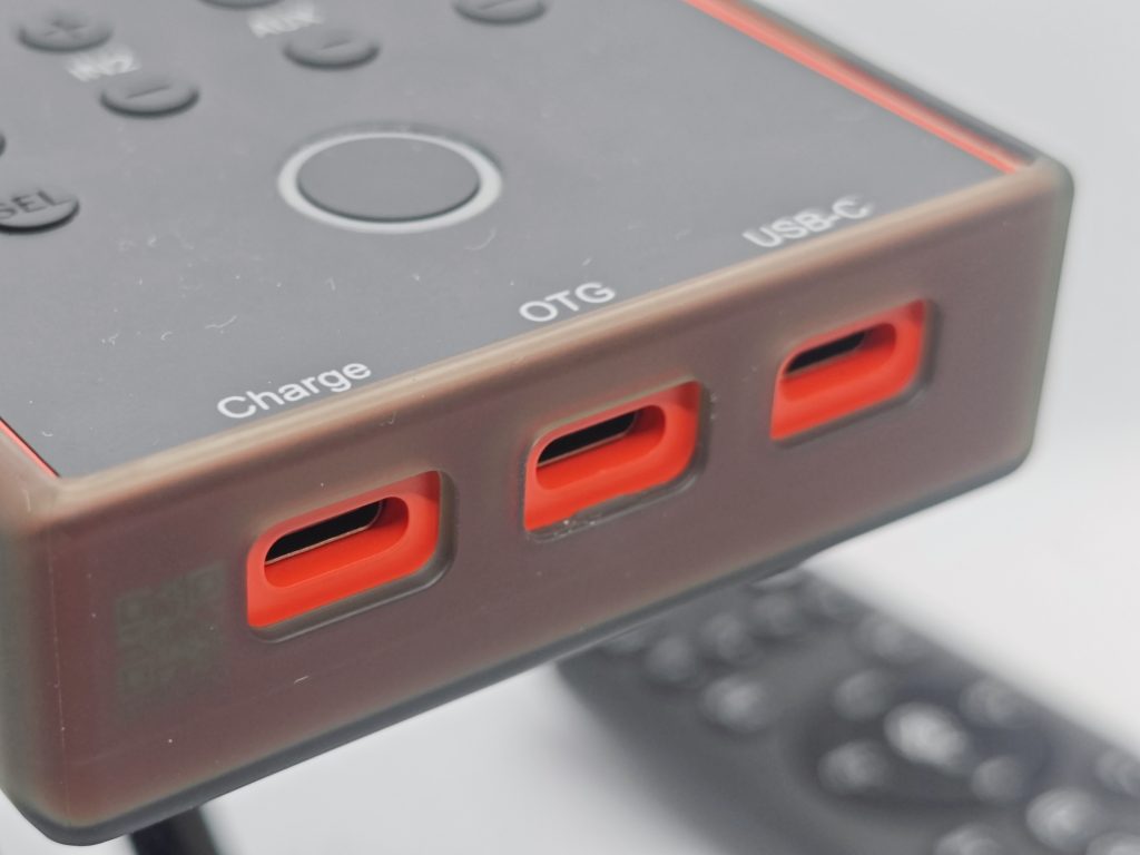 M62提供了OTG和USB-C两路输出(均为USB2.0规格),其中OTG输出最高24bits/28kHz,而USB-C输出最高24bits/96kHz。另外,两路USB均支持直播,也就是说你可以两台手机同时接OTG和USB-C,然后一个抖音直播、一个B站直播。这对于直播用户来说,是极其友好且独特的功能。虽然作为拓品第一代的移动声卡,M62并有提供更为专业的32bits float录音功能(E2X2系列也没有),但对于M62主打的便携直播定位,其规格应该是绰绰有余了。