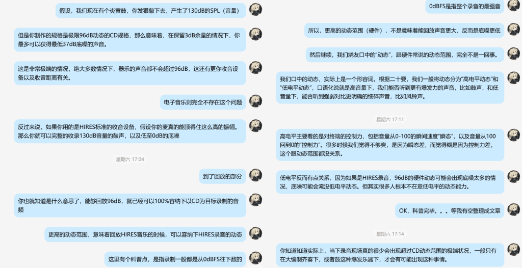 这次科普主要是源自于有个朋友纠结DAC的动态范围参数,我在QQ上跟他聊的内容,经过二次整理之后写成的文章。文章中有部分内容实在是超出了BLOG主的知识储备,因此求助了AI,如果有错漏请不吝指出,谢谢!