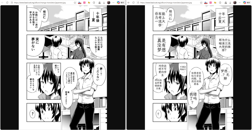 最近BLOG主发现了Github上的Moegal Honyaku项目,可以直接调用openai或者dashscope的api来对网页上的在线漫画进行翻译。先看看效果图: