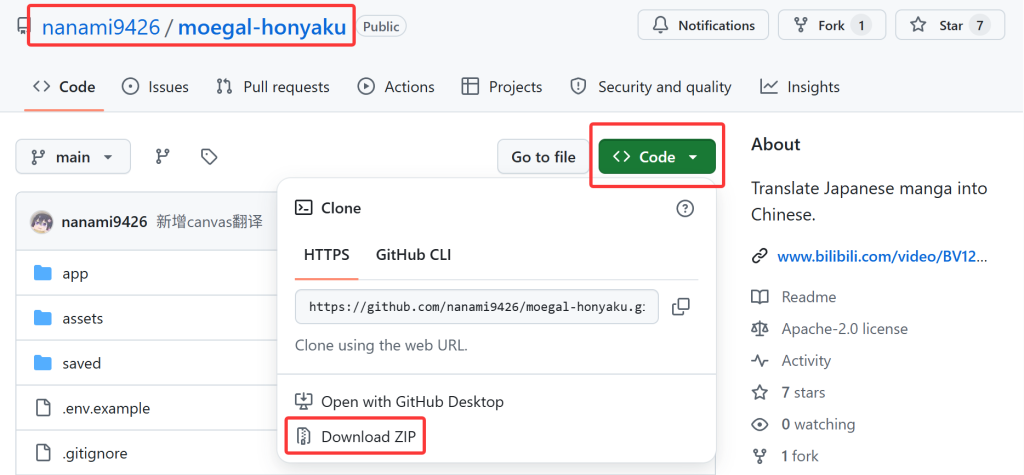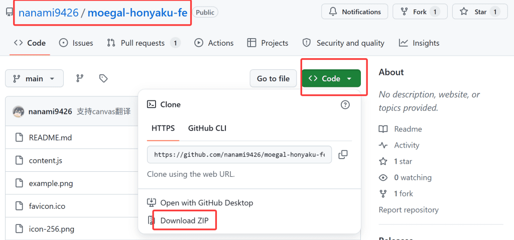 两个的下载方法完全一样,打开github项目(可能需要梯子),点击绿色的Code,随后点击“Download ZIP”就可以下载到压缩包。如果无法打开github,可以下载BLOG主提供的文件(不建议从这里下载,最好是从github上下载最新的版本)。