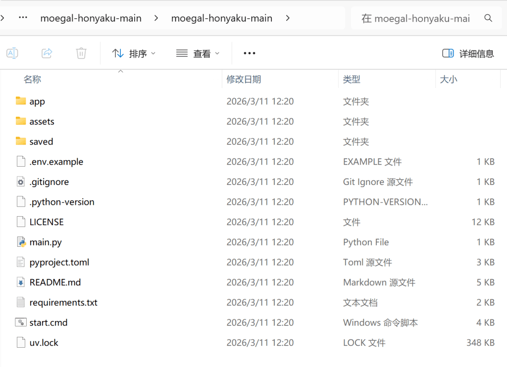 下载完成后,将两个压缩包分别解压缩。接着打开服务端“moegal-honyaku-main”