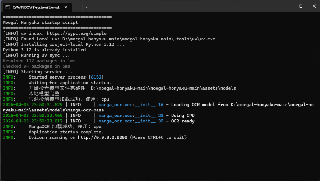 call "%UV_BIN%" run --python 3.12 uvicorn main:app --host 0.0.0.0 --port 8000