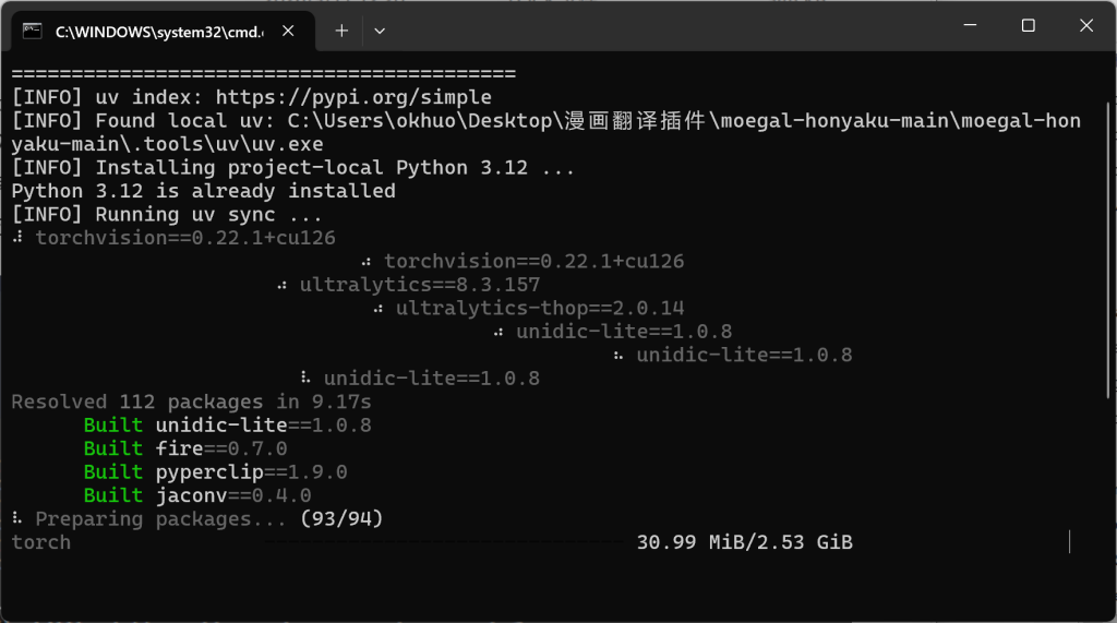 正常的安装过程如上,需要下载2.53G的文件(OCR组件),所以如果速度慢,可以考虑挂梯子或者自行想办法解决。
