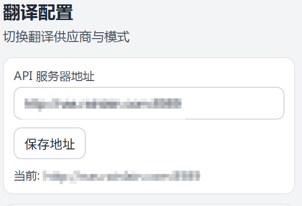 如果各位跟BLOG主一样,有一台NAS或者就是希望在远端电脑上布置服务,而在其他任意一台电脑上使用这个服务。那么可以使用镜月月月大佬修改的项目,它为这个插件添加了一些新功能,也提供了链接远端服务器(仅限内网)的支持。而如果希望外网使用,则可以下载BLOG主在镜月月月大佬基础上二次修改的插件。安装方法跟上面一致,安装完成后点开插件页面,可以看到插件新增了API服务器地址内容: